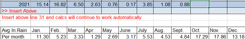 Oct. 1, 2021: Good morning and welcome to October. We’re officially recording .88 of an inch for the month, well under our average of 4.84. That is the least rain in September since 2009. We close out the dry season with 6.74 inches of rain since May 1, a period that on average should see 20.76 inches. As you can see from the chart, October is the start of the rainy season, but it won’t start out rainy.