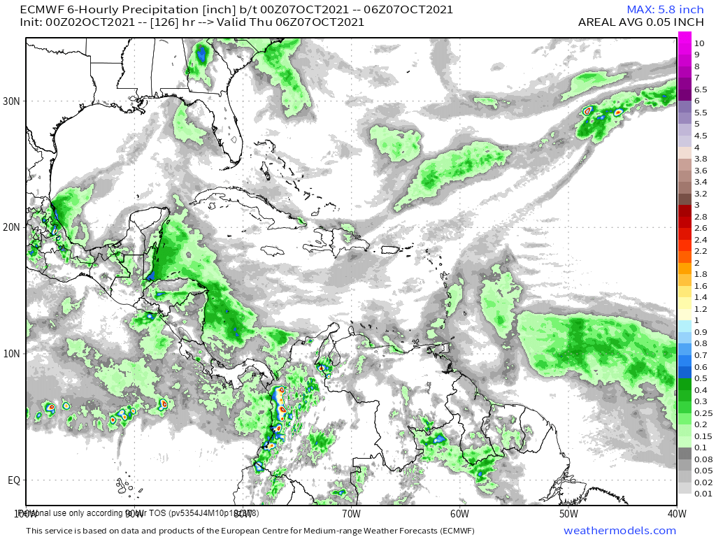 This is the European model for Wednesday night. Notice is shows widespread showers in our region, but does not show a rotating cyclone.