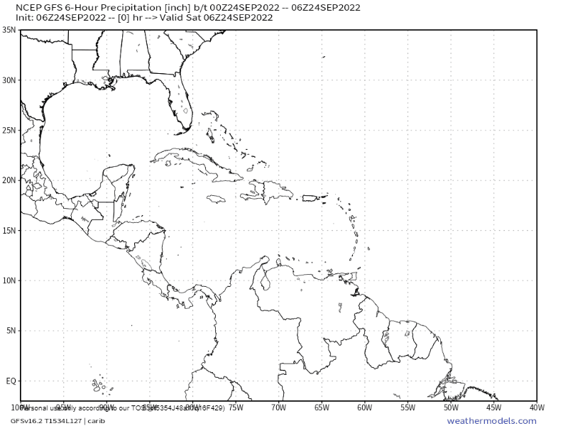 Tropical update for Sept. 24, 2022: You know that feeling you get when you are standing at the side of the road where the road curves, and car is coming right at you but you trust that it will turn away from you in order to stay on the road? That’s where we’re sitting right now with Tropical Storm Ian. Overnight the storm got better structure and it also moved west/SOUTHwest. But all the models say it will begin moving northwest, probably today and move south of Jamaica and toward Grand Cayman before either hitting western Cuba, or perhaps just missing off of Cuba’s western tip and entering the Gulf of Mexico. Exactly how for west it comes will affect our weather next week. It is possible we may see the very westernmost bands of the storm as it passes through the Caribbean on Monday. We probably won’t get much rain, because the western and southern sides of the storm are the driest, but we may get some clouds and, more importantly, some westerly winds and waves. Right now the forecast is for 10-15 mph and 2 foot seas, but keep an eye on it, and the seas will be worse the farther north you go. Through the middle of the week we should be relatively dry, but if the storm gets as strong as they think it will, it should pull northerly winds from North America down this far south. That means next Friday into next weekend could be rainy and cool, much like we get in a winter cold front, though probably not quite as cold. Right now next weekend looks pretty rainy. We’ll keep an eye on it. Exactly when it turns north will tell us a lot.