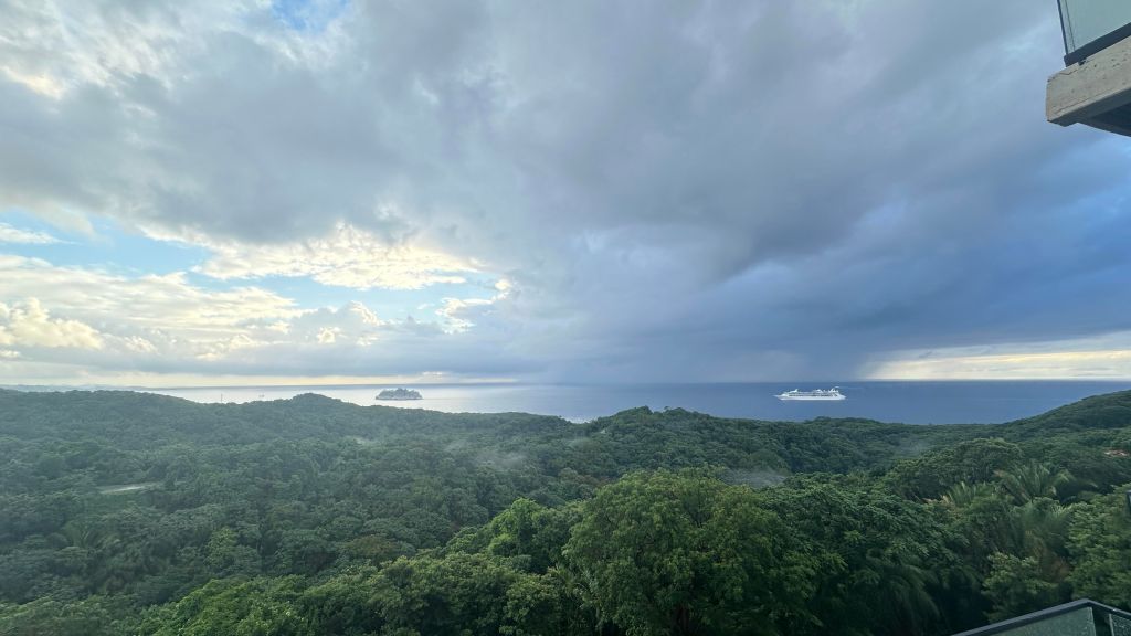 Good morning Bay Islands. Our photo of the day comes from Kam Kirkconnell and shows a couple of cruise ships in the foreground of a rain shower. Yesterday we had a rare December day with no stations reporting rain. As of 7:30 a.m. we have only had a few showers mid-island and east side for about a tenth of an inch. There is rain in the forecast, but a dry spell starting Friday.