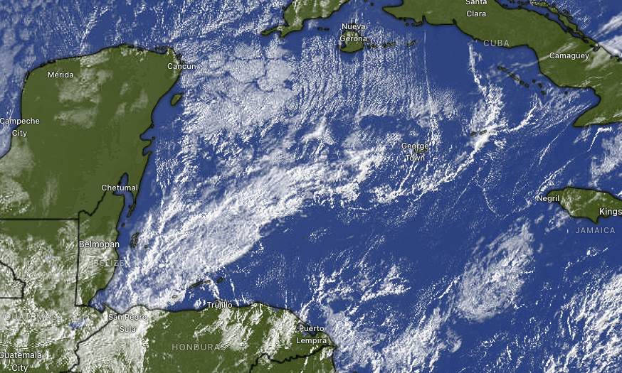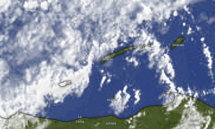 Good morning Bay Islands. Our satellite this morning shows the clouds from our mini-norther approaching our islands at 7:15 a.m., bringing winds from the northwest about 10 mph and cooler temperatures, right around 70 this morning (21C). I know everyone wants to know if it will be raining as you ring in the New Year.