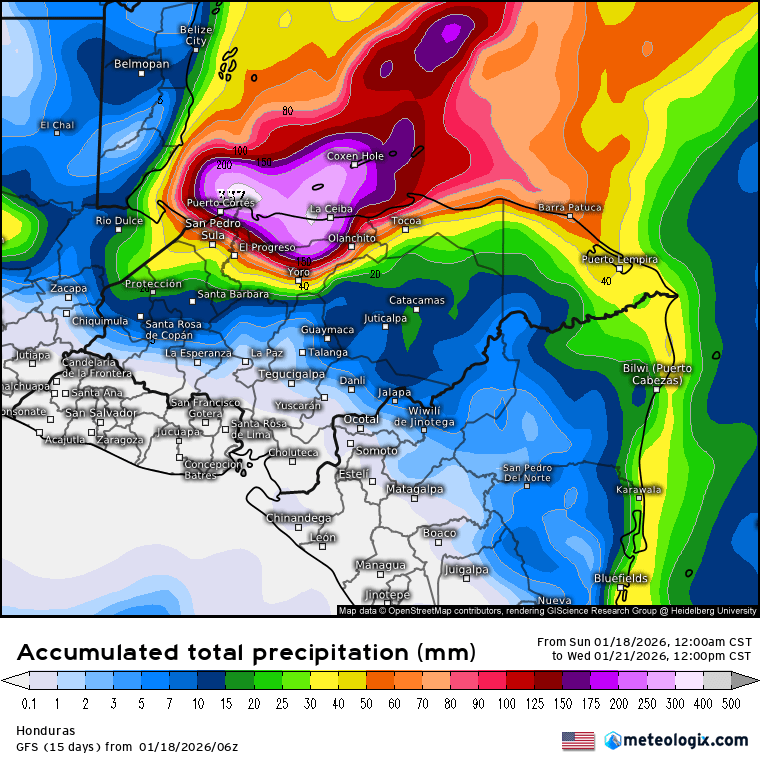 Good morning Bay Islands. Our photo of the day comes from Cesar Gonzales in West Bay with a perfect rainbow. Over the next few days, it will be hard to find enough sun to create a rainbow. We are in for long periods of rain that will often be heavy and strong seas that will peak on Tuesday and perhaps last into Wednesday.