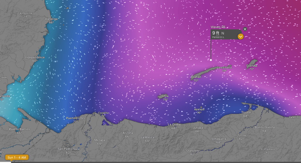 Good morning Bay Islands. I’m posting the wave forecast for overnight tonight as the photo of the day because it is the most important part of the forecast.
