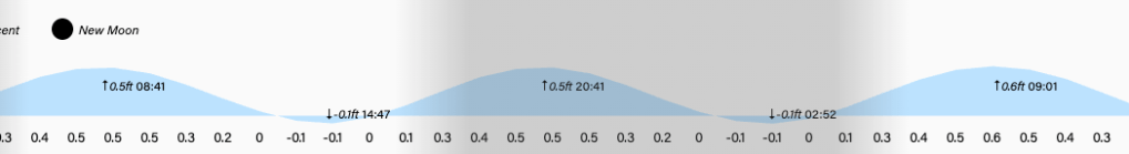 Lowest tides are 2:50 a.m. and p.m. under a new moon. Have a great Tuesday!