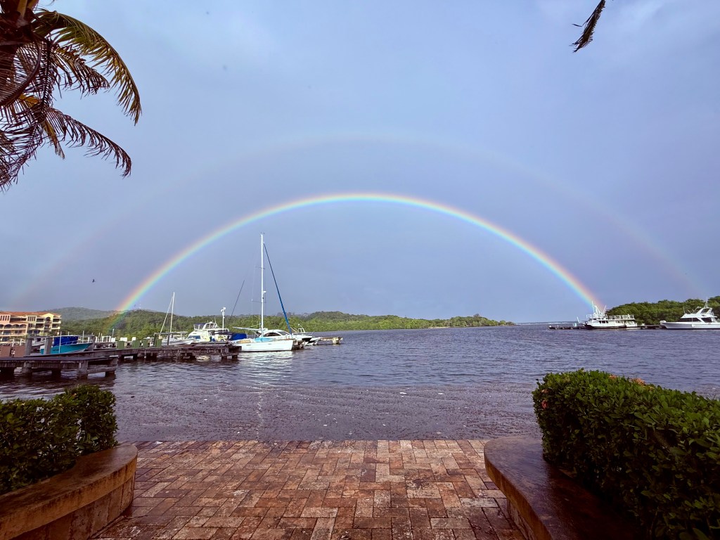 Good morning Bay Islands. Our photo of the day comes from Deanna Jones who captured a double rainbow yesterday at Parrot Tree. We had a quick shower yesterday evening around 5 a.m. and another round in some areas after midnight, that brought a few hundredths to a few locations on the big island, but almost an inch at the Garcia home on Guanaja. The trend is toward drier windier weather.