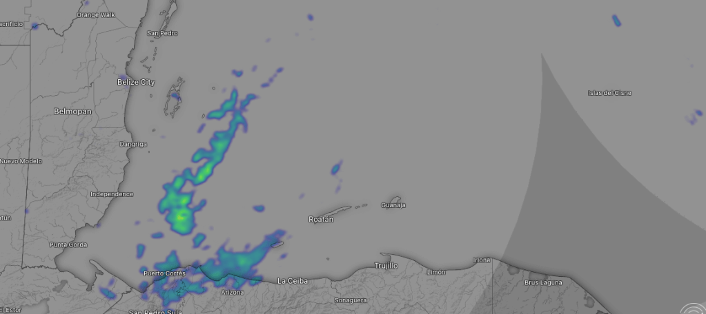 Good morning Bay Islands. As you can see on satellite, there are scattered showers around, especially to the west. Today will be a day of scattered showers and clouds, north winds around 20 mph and seas around 5-6 feet Northside. Wind will calm to 15 mph tomorrow with lower rain chances. The weekend looks quite calm, but we will continue to have a few showers around, especially overnights and mornings. Have a great Thursday!