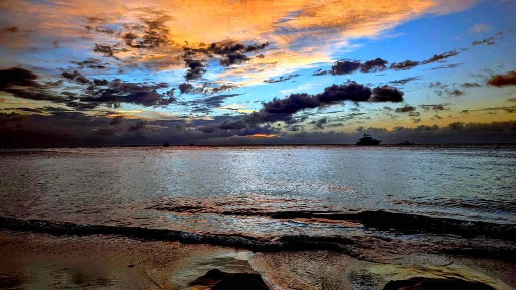 ood morning Bay Islands. Our photo of the day comes from our old buddy Jeff Bodin with sunset on West Bay. We had quite a few showers yesterday morning, especially mid-island and east side, with some locations getting over half an inch. We also have clouds and a few showers this morning.
