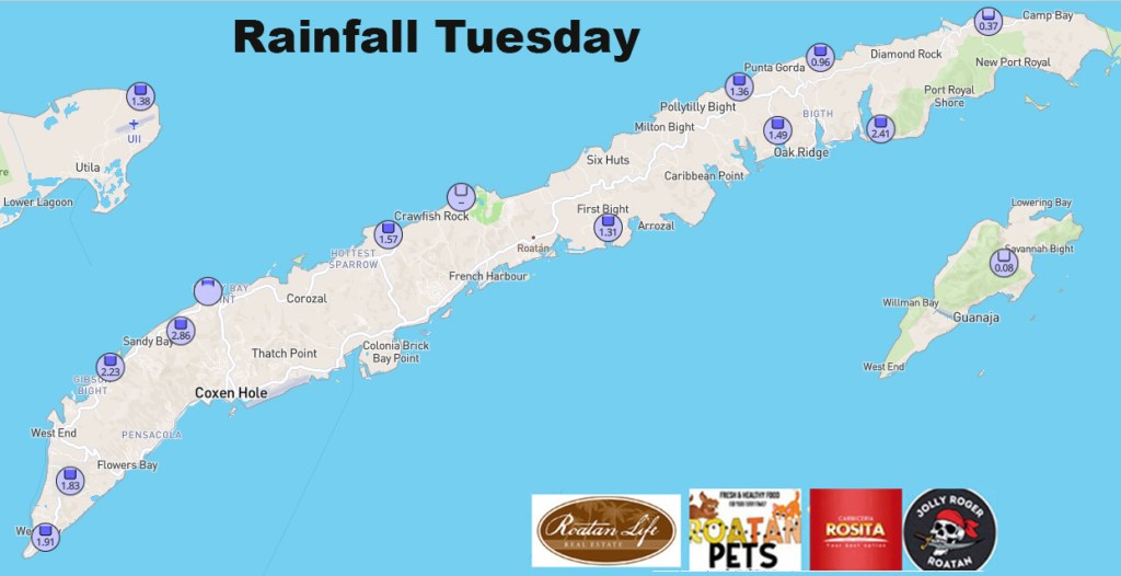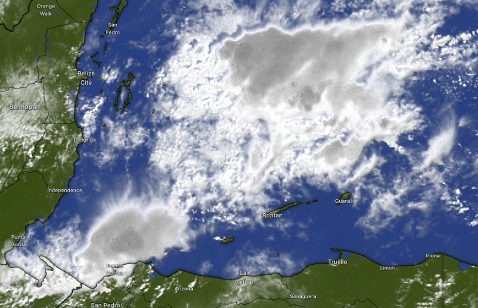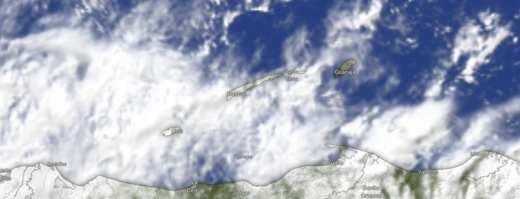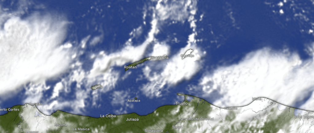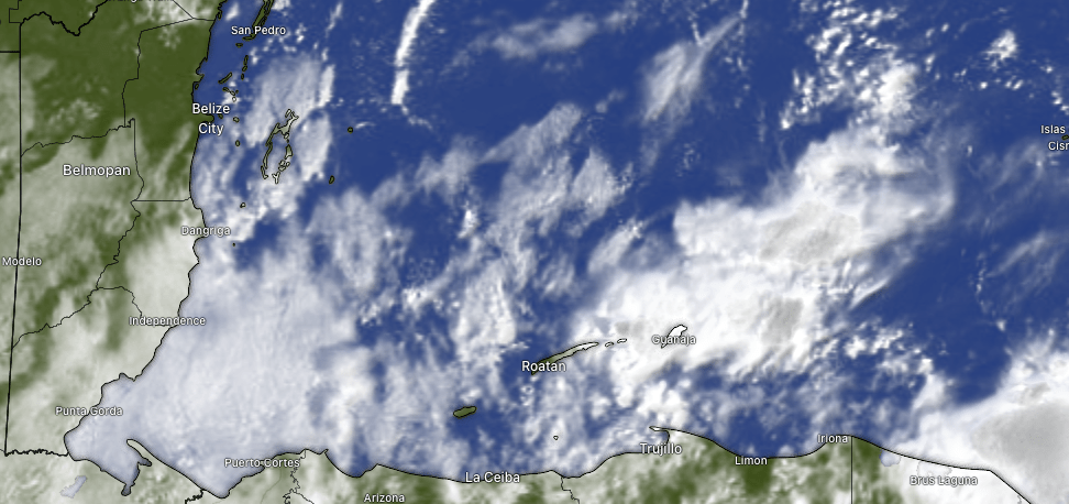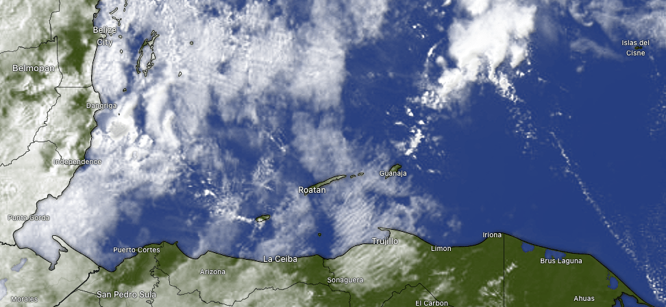 Good morning Bay Islands. Our satellite this morning shows the clouds from our mini-norther approaching our islands at 7:15 a.m., bringing winds from the northwest about 10 mph and cooler temperatures, right around 70 this morning (21C). I know everyone wants to know if it will be raining as you ring in the New Year.