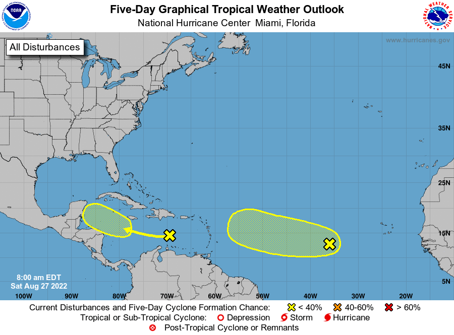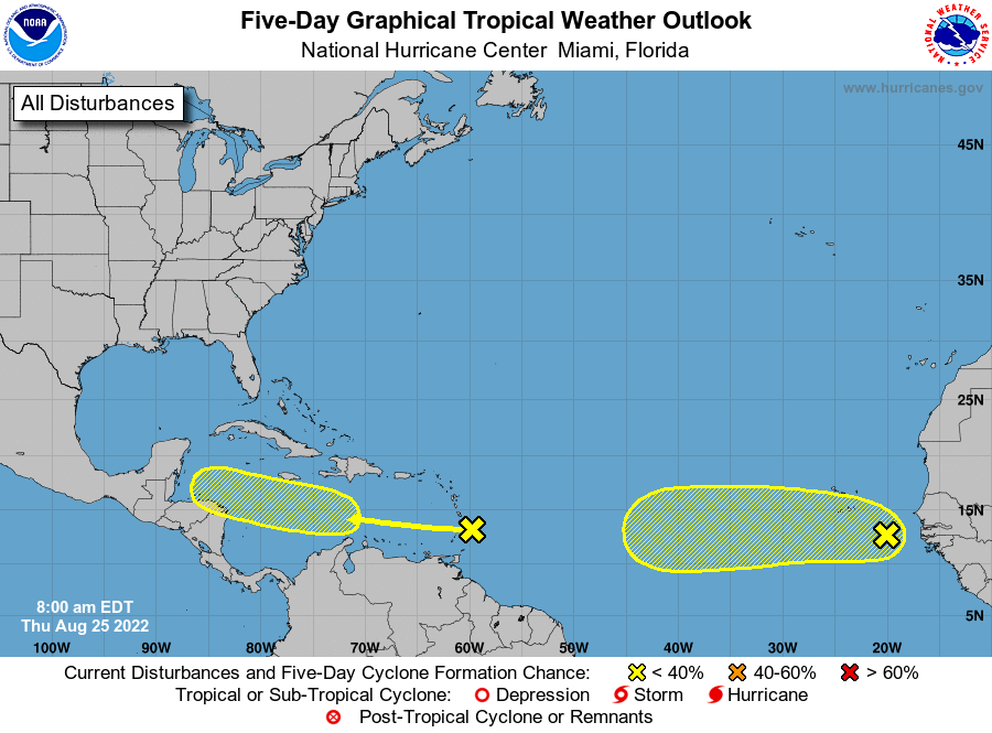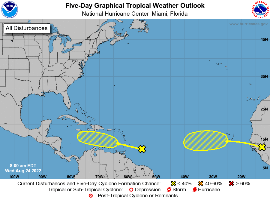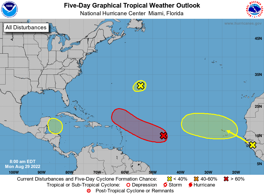 Aug. 31, 2022: Good morning, Roatan! Our tropical wave came close enough yesterday to give some of us a good downpour around midday. Coral View was the big winner with 1.15 inches. Politilly got a third of an inch as did one location in Sandy Bay. Punta Blanca got a tenth of an inch and here on Jonesville Point we only got .02 of an inch. West Bay and West End got no measureable rain.