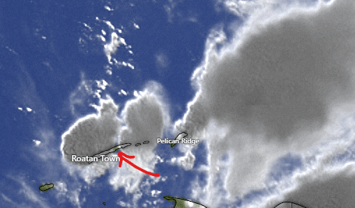 July 22, 2022: Good morning, Roatan! This morning is quite blustery. I made to up to 30 mph this morning on the wind gauge. Most of us got a little rain. I got .03 of an inch, but West Bay and West End got almost a fifth of an inch overnight. Scattered showers and wind will be the rule of today, with chances about 50 percent today and about 80 percent tonight. Winds may calm a bit from where they are, but will remain around 20 mph, except in squalls when they will gust to 25-30 mph. Seas will be 3-5 feet (1 to 1.6 meters).