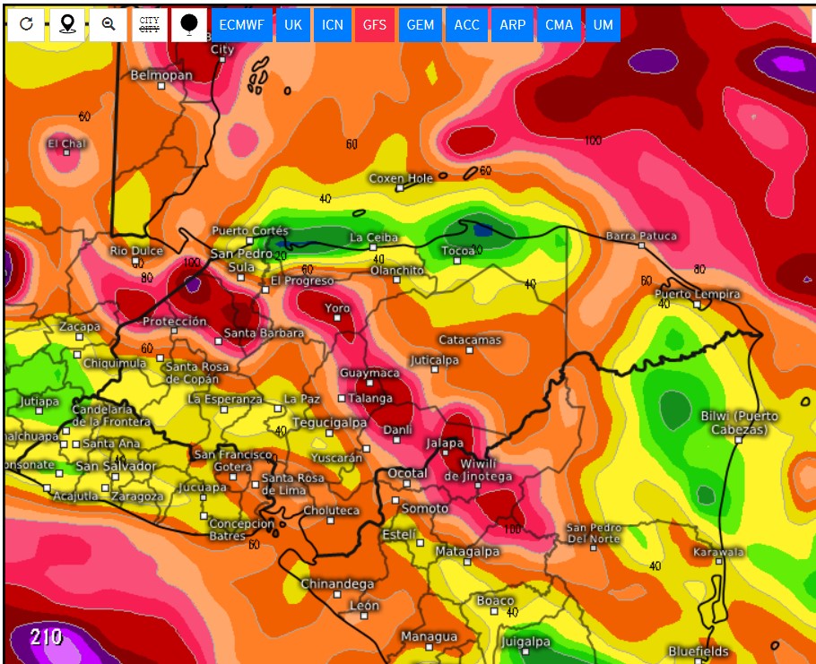 The big story is the mass of showers between Colombia and Nicaragua. Over the next few days it is expected to move northwestward. Yesterday the U.S. GFS model was trying to turn this into a tropical storm. Today it looks much less organized and much more likely to just be a lot of scattered showers starting Thursday evening and running through Saturday. Several models move most of the moisture into the Pacific to our south. The National Weather Service gives it a 40 percent chance of tropical development over the next five days. We’ll keep an eye on it.
