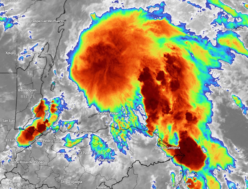 The satellite image here is from 6 a.m. today and, as you can see, the majority of the precipitation is to our east. Believe it or not, the center of the low pressure system is almost directly over Guanaja and should move westward as the day goes on. But with many low pressure systems, the west and south side are the driest. That means a good chance of rain today, but probably not a lot of rain and probably some sun as well. Winds will also be quite calm. Rain chances will perhaps be greater as we get into Saturday and Sunday. Winds should stay calm until Sunday night, picking up into the 20 mph range Sunday evening. Monday is looking quite windy right now, with winds possibly around 30 mph. Decent rain chances stick around through most of next week, perhaps getting a little less toward the end of the week. Have a great Friday!
