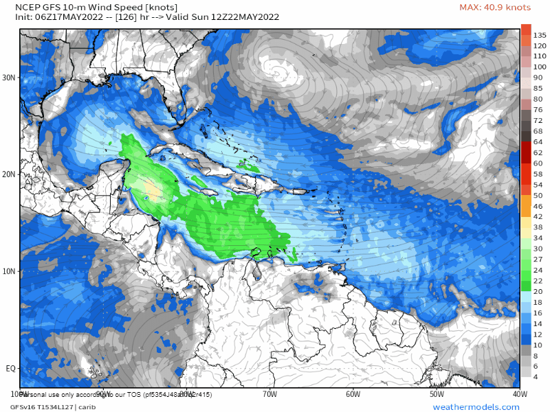 May 29, 2022: Good morning, Roatan! There are plenty of clouds around, but somehow we have managed to avoid the rain. On radar, most of the scattered showers are to our west.