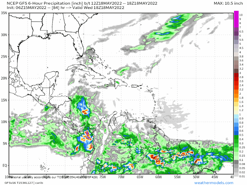 May 15, 2022: Good morning, Roatan! We wake up this morning with significant clouds near the Mosquito Coast of Nicaragua. Some of those showers may move into Nicaragua but should stay away from us, but it may throw some clouds our way.