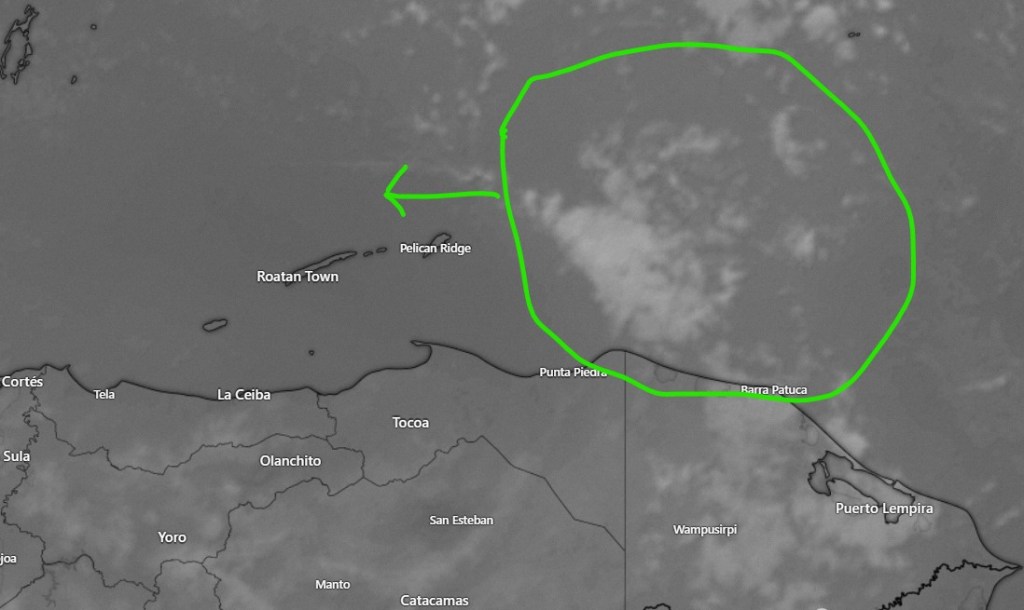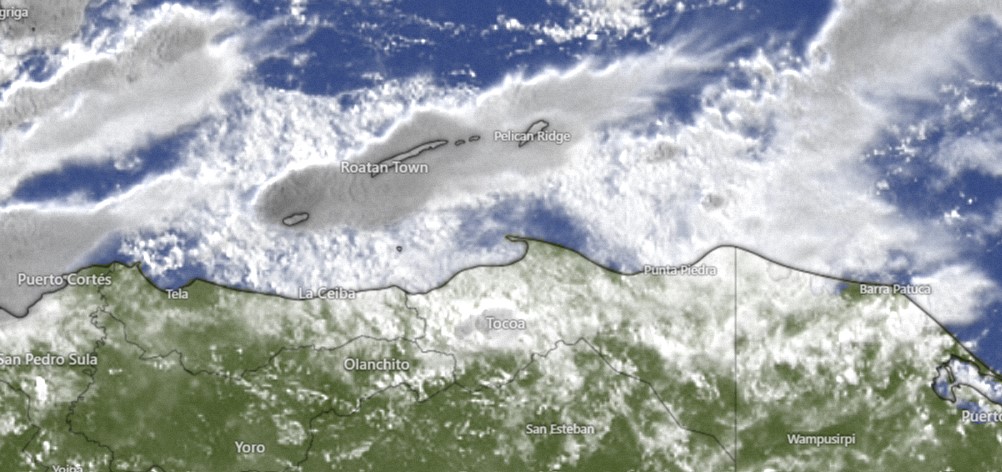 The 8 a.m. satellite shows us in a thick bank of clouds, though the radar shows most of the heavy stuff to our west and over Utila. We will have off-and-on showers under mostly cloudy skies today with east winds around 10 mph and seas 2-3 feet (.6 to 1 meter). Our best chance to dry out is this afternoon, but even then we can’t rule out a stray shower. Rain returns tonight and tomorrow morning, but our Saturday should also have plenty of sun and near calm winds, giving us a beautiful day. There will be a chance of rain overnight Saturday.