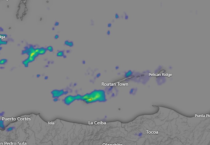 April 22, 2022: Good wet Friday morning, Roatan! The big winners with rain are on the east side, though everyone got in on the fun. Punta Blanca got over an inch this morning and almost an inch around 11 a.m. yesterday for over two inches. Politilly got almost two inches this morning after a third of an inch yesterday. I got nothing yesterday but as of 8 a.m. I have an inch and a quarter and my water tank is grateful. Dave in Coral View Village reports almost an inch. Sandy Bay reports about a third of an inch and West End a half an inch. Larry Rapp between WB and WE got half an inch and West Bay reports 1.15 at 8 a.m. Utila is experiencing a downpour on radar and has an inch and a half and counting. Keep in mind our average for April is less than an inch and a half.