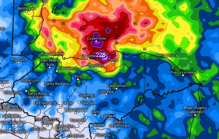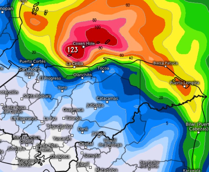 March 29, 2022: Good morning Roatan. The east side is getting a decent shower at 7 a.m. Punta Blanca already has over half an inch for today. Most locations got between half an inch and an inch in the period after 7 a.m. yesterday. The 7 a.m. radar shows what is likely the last wave of rain out of this system. There will be chances of rain, especially through the morning. Clouds should decrease this afternoon and the easterly trade winds return. They will gust to 30 mph overnight creating 5 foot (1.6 meter) seas. That cycle will repeat (15-20 mph winds during the day, 20-30 mph at night) for the next week. Next rain system in the long-range forecast is around April 9. Have a great week!