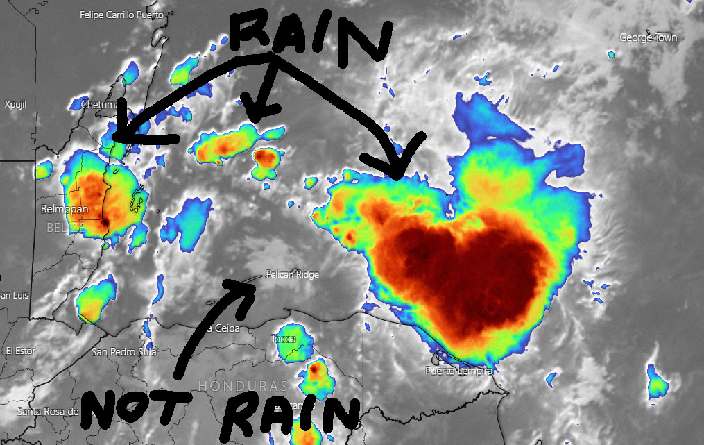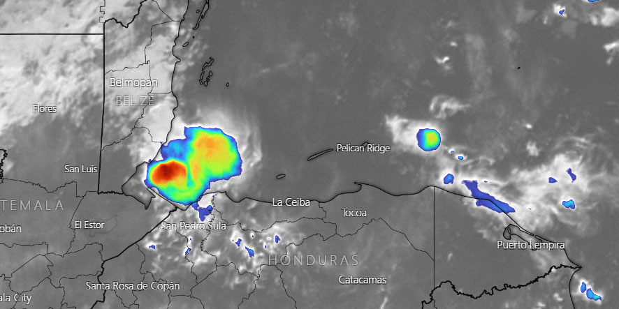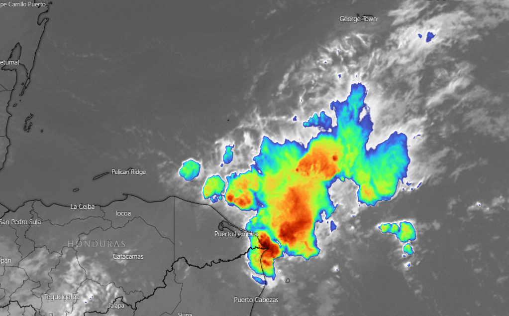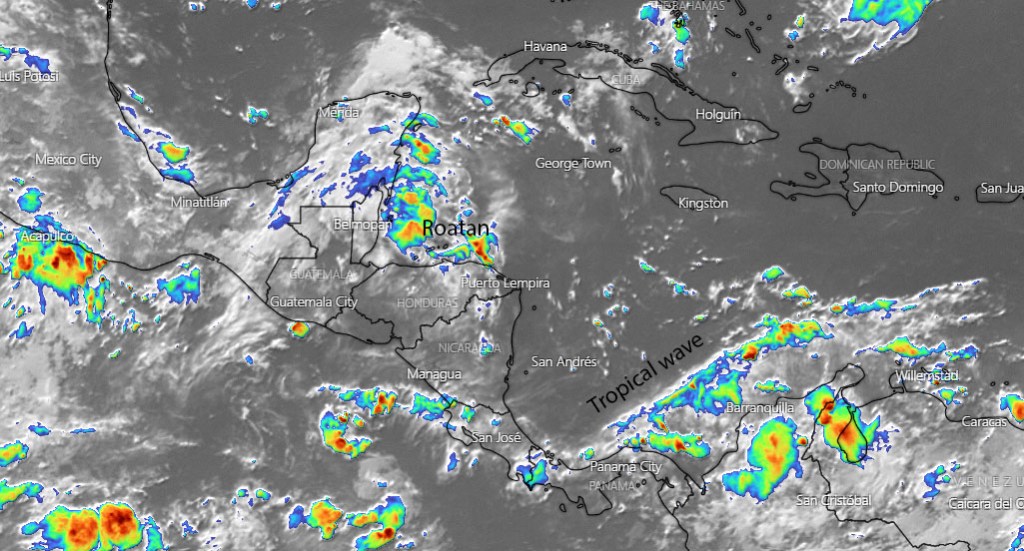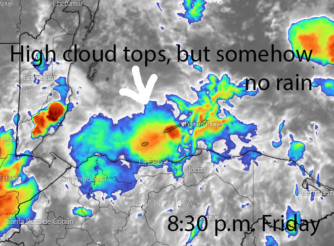 Sept. 6, 2021: Good morning, Roatan! We wake up in a familiar position — with clouds to the east and clouds to the west but not very many over our heads.