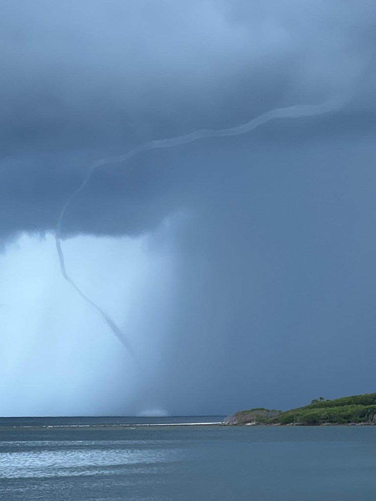 Good morning Bay Islands. Our photo of the day comes from Clyde Meyer, who captured this impressive waterspout yesterday afternoon in Brick Bay. I was actually driving by at the moment and saw my second waterspout in six years here. This was a rogue storm that formed suddenly yesterday afternoon, the kind of thing that can happen in the tropics. I always say waterspouts are generally harmless, but I guess if you were right under this one you would have gotten shaken up a little, judging from the way it stirred up the water at its base.