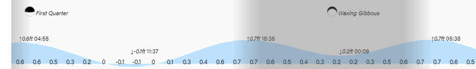 Wind and Galaxy Wave forecast: This morning we are having one of the windier mornings we’ve had in awhile, with 15-20 mph east winds and seas around 3 feet southside. We will keep those winds and seas today, even a little breezier this evening with east winds 17-22 mph. Tomorrow and the week ahead look calmer, with east winds 10-15 mph and seas 2 feet southside.