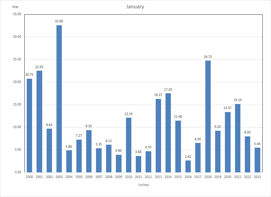 As we look forward to January, we see the beginning of the end of the rainy season. January averages 11 inches and the end of the month is typically drier than the beginning. But based on the current forecast the beginning of January looks fairly dry, so odds are good for a below average January rainfall.