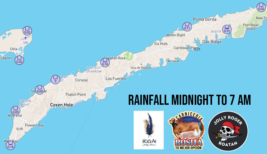 Good morning Bay Islands. Our video of the day comes from Megan Mitchell and shows the waves pounding Sandy Bay Beach. My peak wind gust on Jonesville Point was 46 mph and Ron Ohm picked up 48 mph. Waves reached 8 1/2 feet but I’m sure they were probably 9-10 feet at some point (around 3 meters). Some voiced concern about beach erosion.