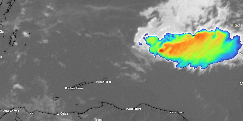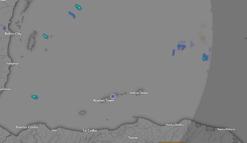 Good morning Bay Islands. We had a shower try to make it to Utila around 1 a.m. and fall apart just before it got there. Otherwise on radar we see another storm well to our north off the northern coast of Belize and one coming off the Mosquito Coast. But sadly none of them were around here.