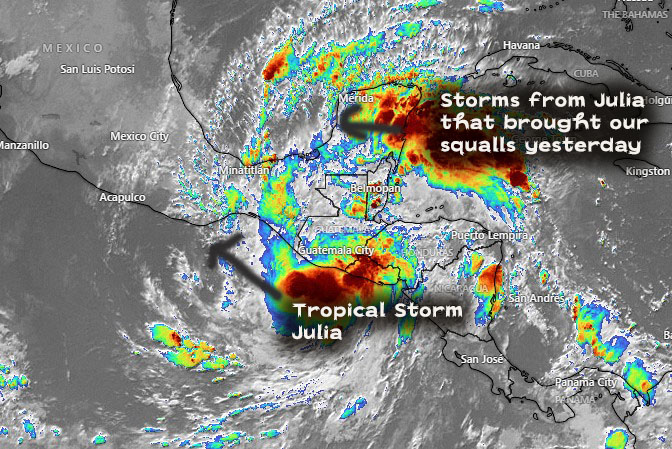 Good morning. Our norther is now in the Gulf of Mexico and will bring us cooler weather and rain, probably on Thursday night into Friday. Right now it doesn’t look like it should bring us a lot of wind.